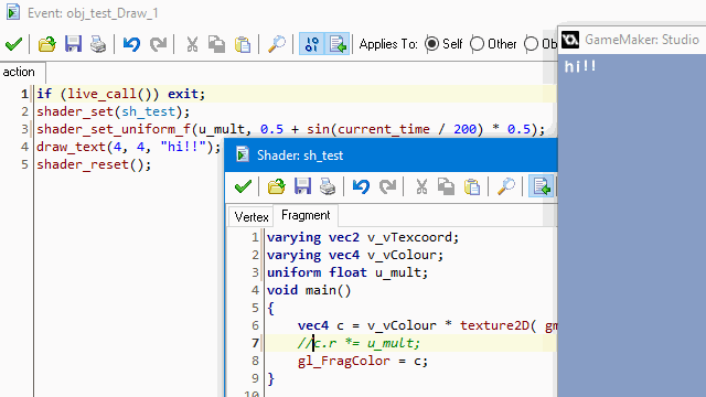 Let's go over this for a little bit: although GMLive's server will do most of the work on converting shaders to GM format, the game needs to be able to load those changes. After some consideration, I have decided to make this a separate extension with ability to specify your own. There are a few reasons for this: